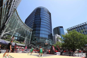 オフィスやレジデンス、商業施設など多様な施設で構成される複合施設です。近代的なビルに囲まれた広場で、3×3ならではの「省スペース」での試合が展開されます。